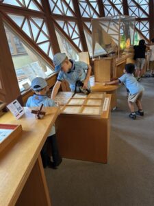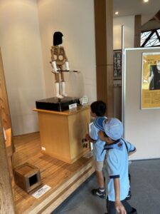 からくり館に行って、からくりやおもちゃであそんだよ!ぜんまいでうごく「からくり人形」みごとにお茶を運び戻って行きました。おもちゃもいっぱいあって、たっぷりあそんで、大満足。