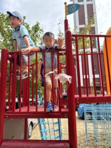 9月21日パラシュートとヘリコプターを作って、すべり台や、ジャングルジムの上から地上に落下させたよ、ヘリコプターはクルクルまわって、パラシュートは、ふんわり地面に降りたよ!