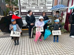 募金してくださったみなさんありがとうございました。金沢を旅行中の外国人の方(欧米人のおじさま)からも募金をいただきました。感謝。感謝です。カトリック金沢教会の募金活動は信者さん、スカウト(BS、GS)、教会学校、そして、聖霊愛児園の方々により、1969年から現在まで、55年続く活動で、世界や、国内の支援を続けています。