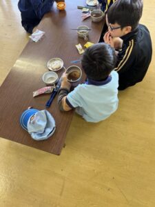 金沢に古くから伝わる遊び「旗源平」をしました。何回もして、盛り上がり、そして、スカウト道の稽古はじめとして、ぜんざいをおいしくいただきました。